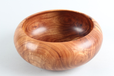 "Burlesque" Burled Cypress concaved deep rimmed bowl, turned nice and thin with 6mm walls from top to bottom, finished off with Boiled Linseed oil then Tripoli and Carnauba wax buffed to seal off to a satin finish, 250mm diam x 100mm H.