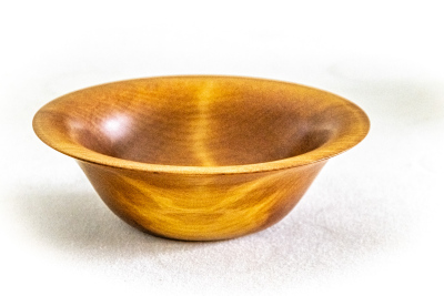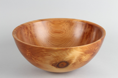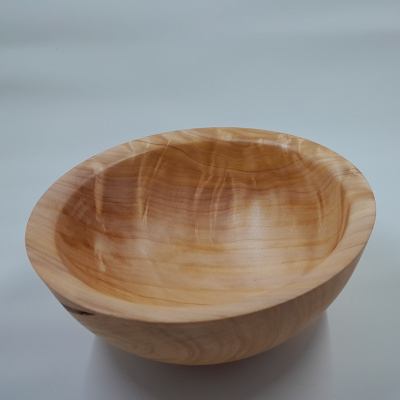 Macrocarpa bowl. 140mm x 65mm. Sanded to 400 Grit. Sealed with nitrocellulose sanding sealer. Finished with Spray lacquer 30% gloss.