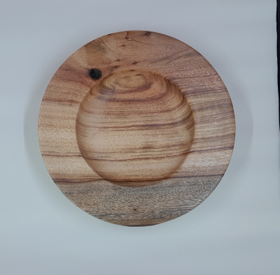 Camphor platter. 180mm x 35mm. Sanded to 400 grit. Finished with spray lacquer 30% gloss.
