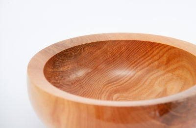 Wooden items made from a single piece of wood with all surfaces cut while the wood is turning on a lathe to a bowl or platter shape. No detailing, beads, decoration, embedded resin, colouring, texturing or embellishment.