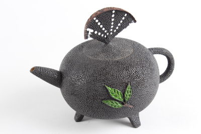 Wood is ancient Kauri, all made from the same block. 140mm wide x 105mm high, not including finial. Handle and spout x 6mm thick. Finish is spray lacquer. Embellishment pyrography, acrylic paint and gilders paste